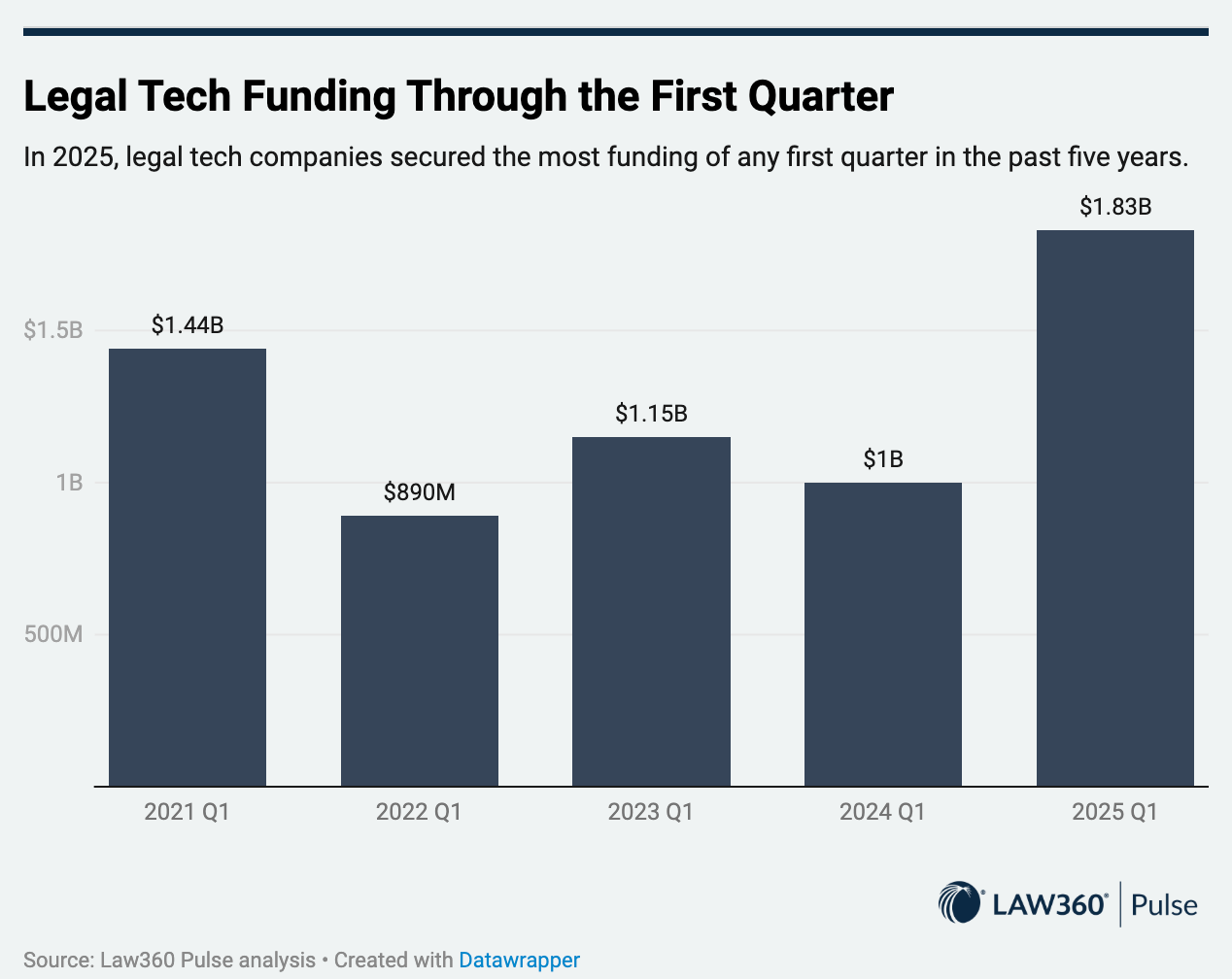 Details: Legal tech companies raised around $1.83 billion in Q1 2025, up from $1 billion in the same period last year. This jump is thanks to the growing use of AI tools that help with contract writing, legal research, and reviewing documents.